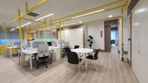 El centro presenta una distribución moderna y equilibrada, en la que conviven áreas abiertas de trabajo, espacios de reunión y zonas de apoyo que favorecen tanto la operativa diaria como la colaboración entre equipos. Su configuración permite adaptar el inmueble a distintas formas de ocupación, ofreciendo una solución flexible y funcional para organizaciones con necesidades cambiantes.
