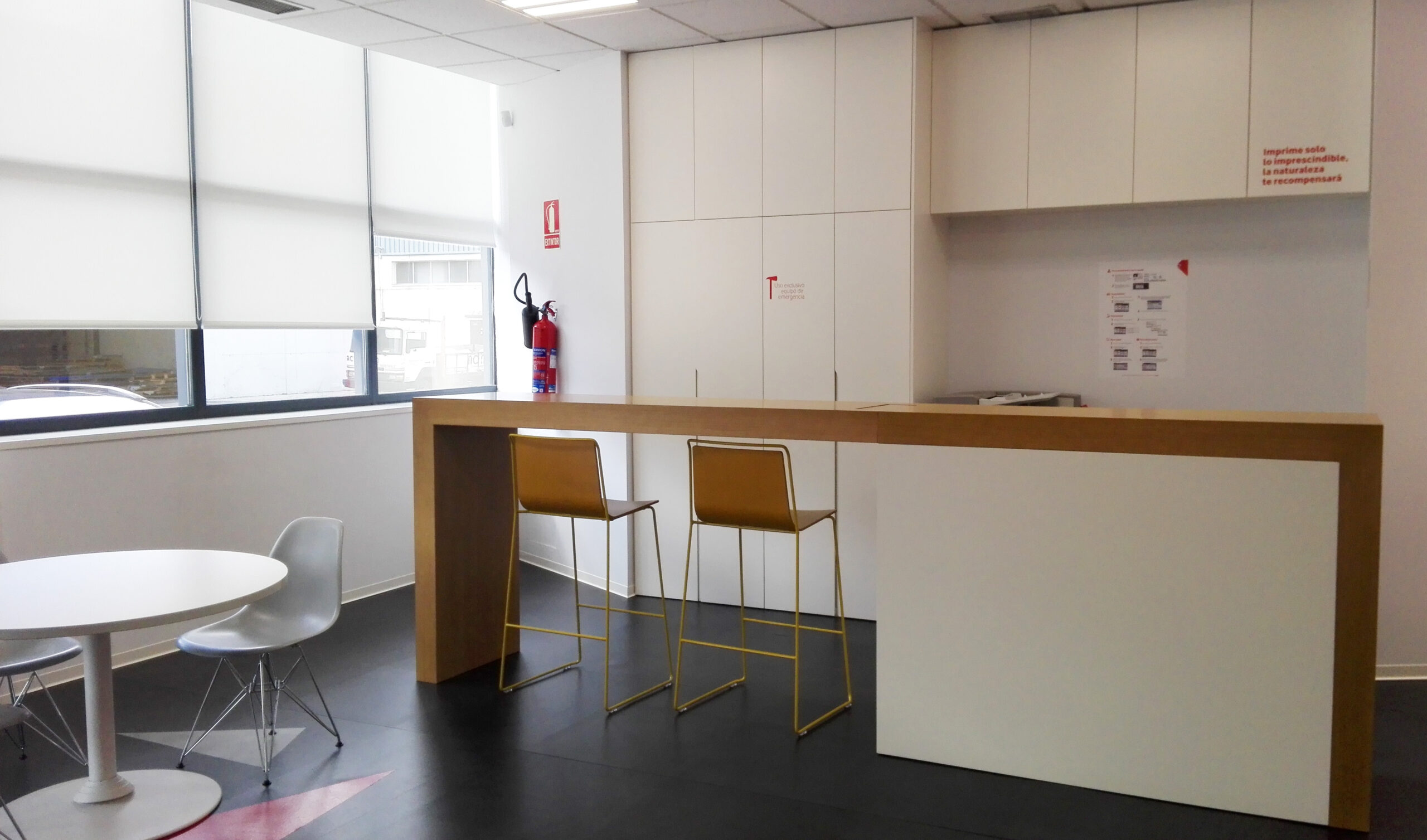 La oficina presenta una distribución funcional y versátil, pensada para dar respuesta a diferentes necesidades corporativas. Dispone de zona abierta de trabajo, sala de reuniones, sala de formación, office, aseos, almacén y otras áreas auxiliares de apoyo, permitiendo combinar actividad administrativa, reuniones internas, trabajo en equipo y sesiones formativas dentro de un mismo espacio.