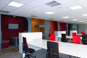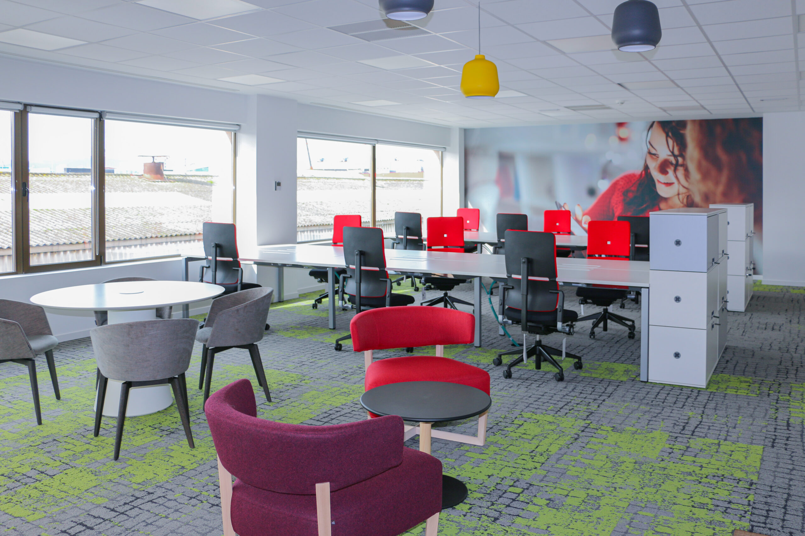 Las oficinas presentan una implantación moderna y muy cuidada, con amplias zonas diáfanas de trabajo, puestos operativos en formato open space, áreas de reunión informal, salas de formación, salas de juntas y espacios de encuentro pensados para favorecer tanto el trabajo diario como la colaboración entre equipos. La distribución interior permite combinar zonas representativas con áreas más operativas, ofreciendo una solución versátil para compañías que busquen centralizar actividad en un único inmueble.