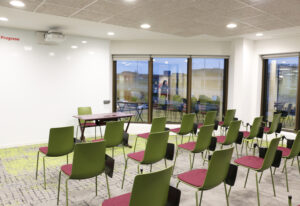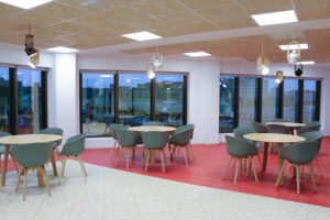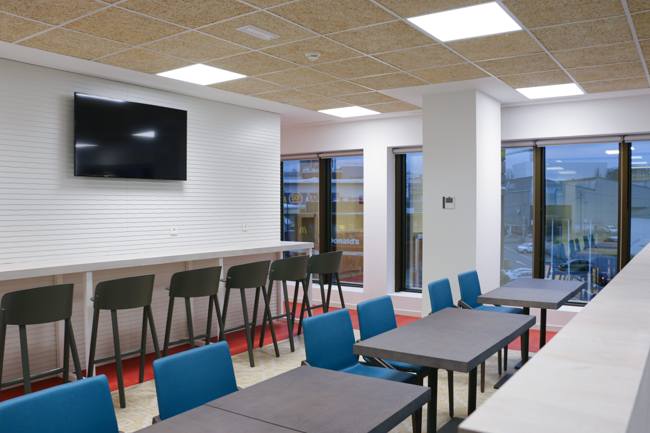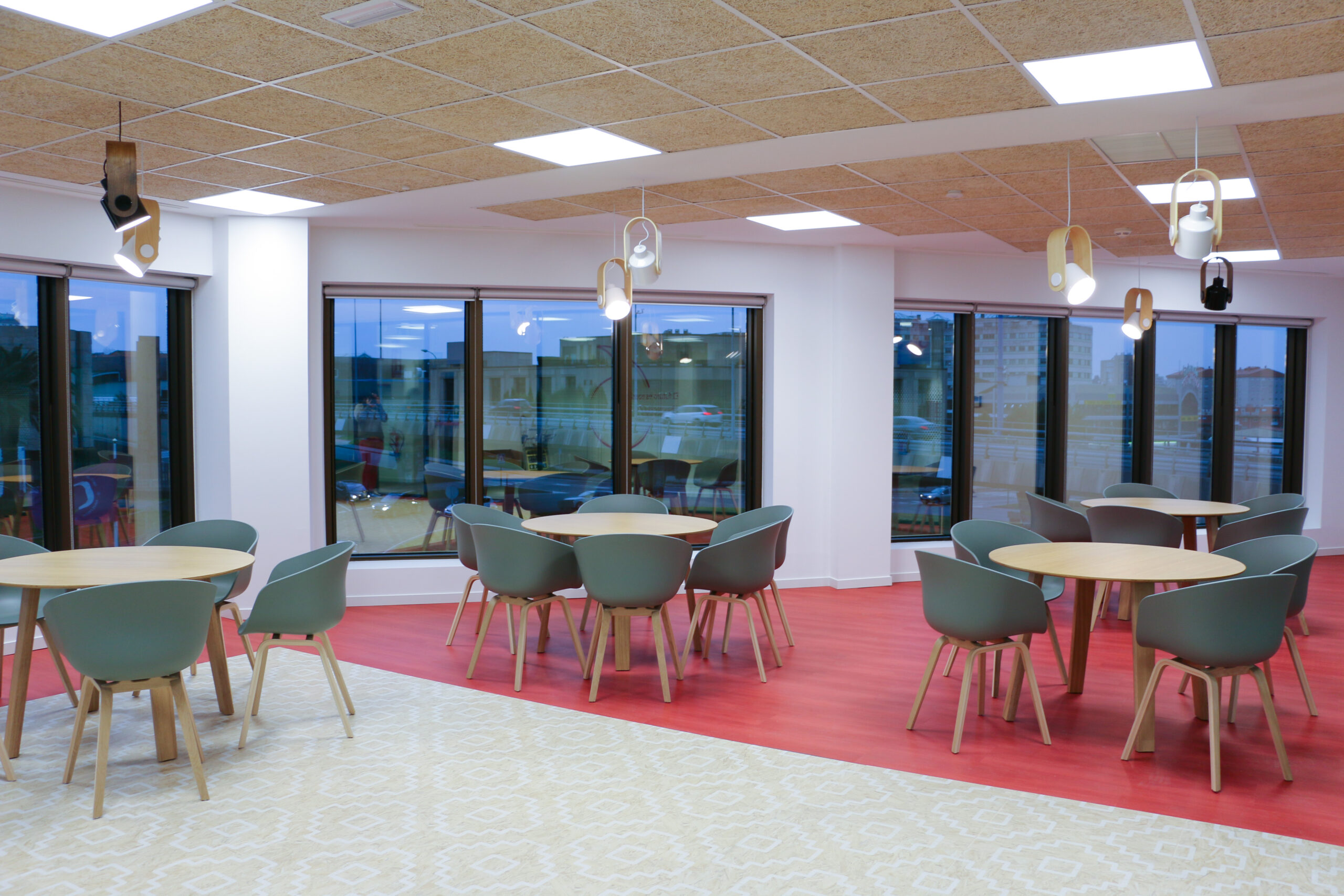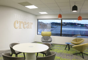 El inmueble dispone asimismo de una zona de recepción representativa, espacios colaborativos, salas polivalentes y zonas de office o descanso que completan una implantación muy orientada al bienestar y al uso corporativo. También destacan las salas de reuniones de gran formato y las áreas preparadas para presentaciones o sesiones formativas, lo que amplía notablemente las posibilidades de uso del edificio.