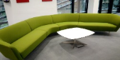 Sofá Boomerang verde, una pieza de diseño que combina estilo, comodidad y personalidad. Su forma curvada y envolvente crea una estética moderna y sofisticada, ideal para espacios contemporáneos o ambientes con un toque retro.